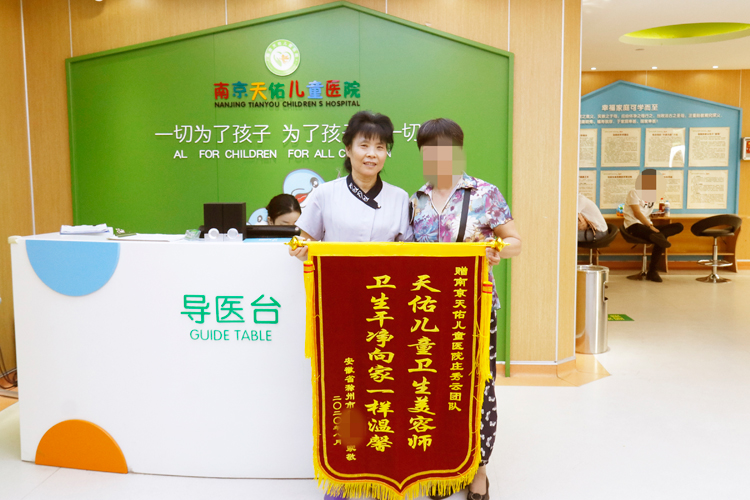 8月6日一大早,南京天佑儿童医院保洁部门的庄秀云庄阿姨收到来自患者小辰(化名)奶奶赠送的锦旗,以此表达他们一家人对天佑保洁团队辛苦付出的感谢。锦旗上写着:“天佑儿童卫生美容师,卫生干净像家一样温馨。”